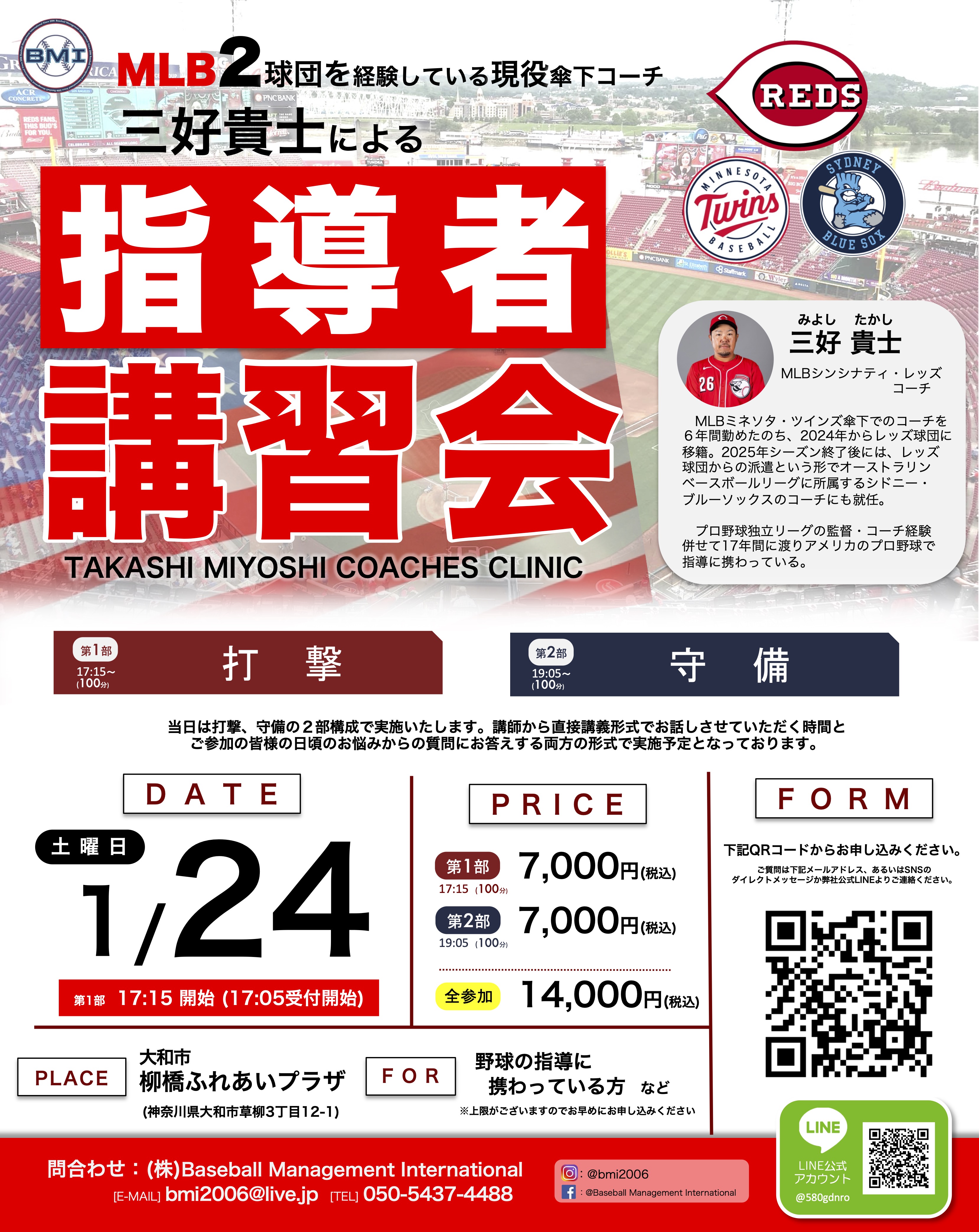 MLBミネソタ・ツインズ、シンシナティ・レッズの2球団でコーチを務め、現在もシンシナティ・レッズ傘下で指導を続けている弊社代表の三好貴士氏が指導者向け講習会を開催致します。