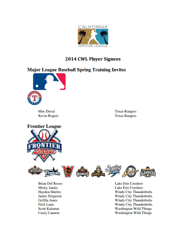 2014年度のカリフォルニア・ウィンターリーグは全体で200人以上の選手が参加し、その中の51名(プラス1名は清水広貴選手がアシスタントトレーナーとして契約をしています)が契約オファーを下記のリーグから受けています。