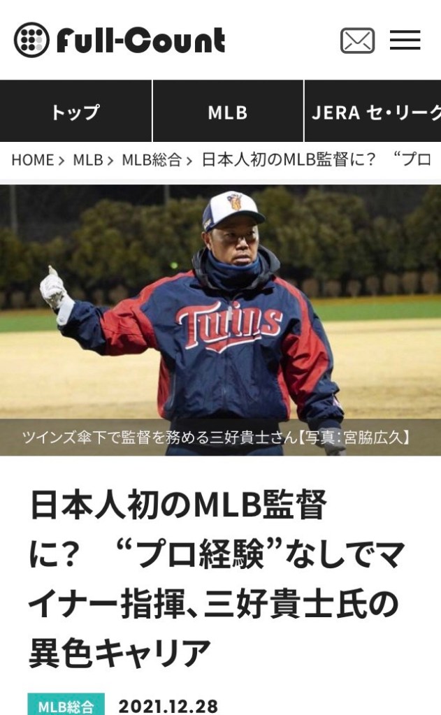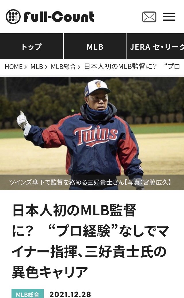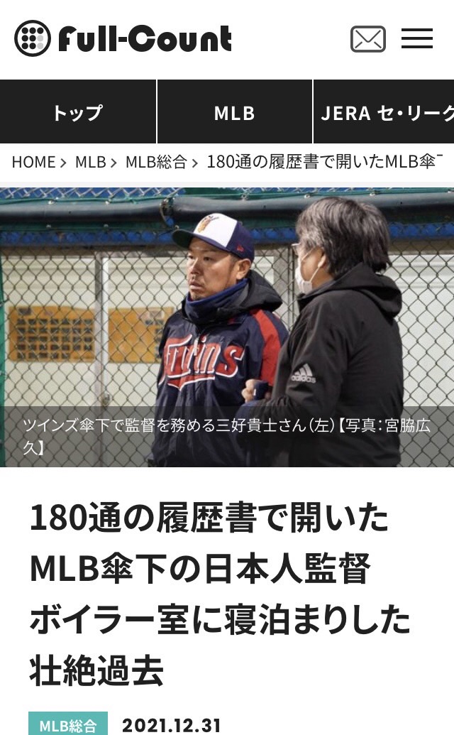 弊社代表であり、MLBミネソタ・ツインズ傘下のマイナーリーグにて監督を務める三好貴士の記事が「Full-Count」さんにおいて掲載されました。宮脇広久さんが書いて下さっています。