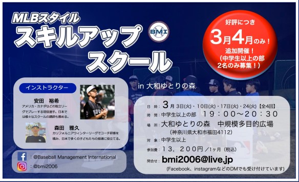 2019年の9月から5ヶ月間にわたって行われましたスキルアップスクールですが、ご参加いただいた皆様からのご要望もあり、中学生以上のクラスは3月4月のみ追加開催することが決まりました!!