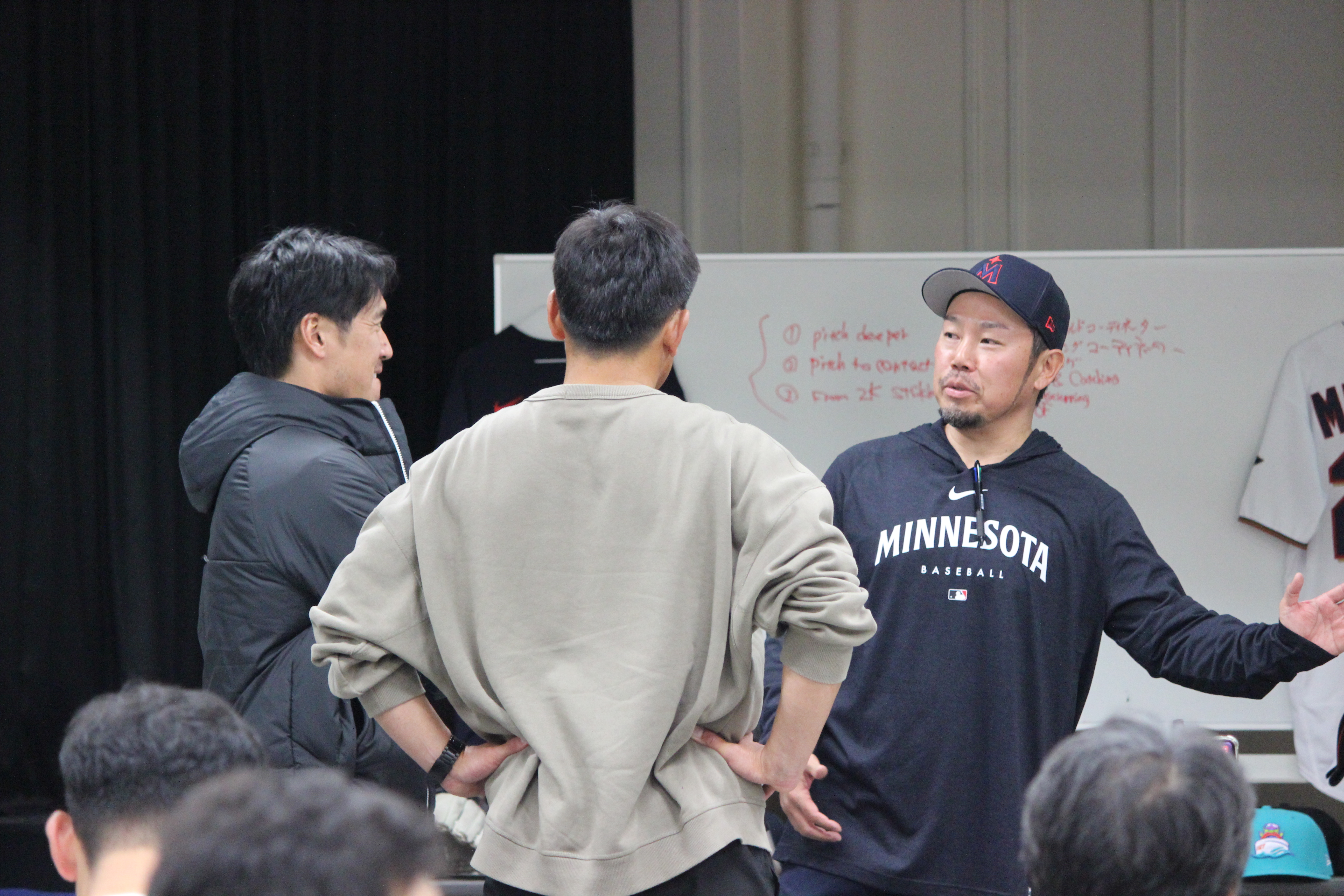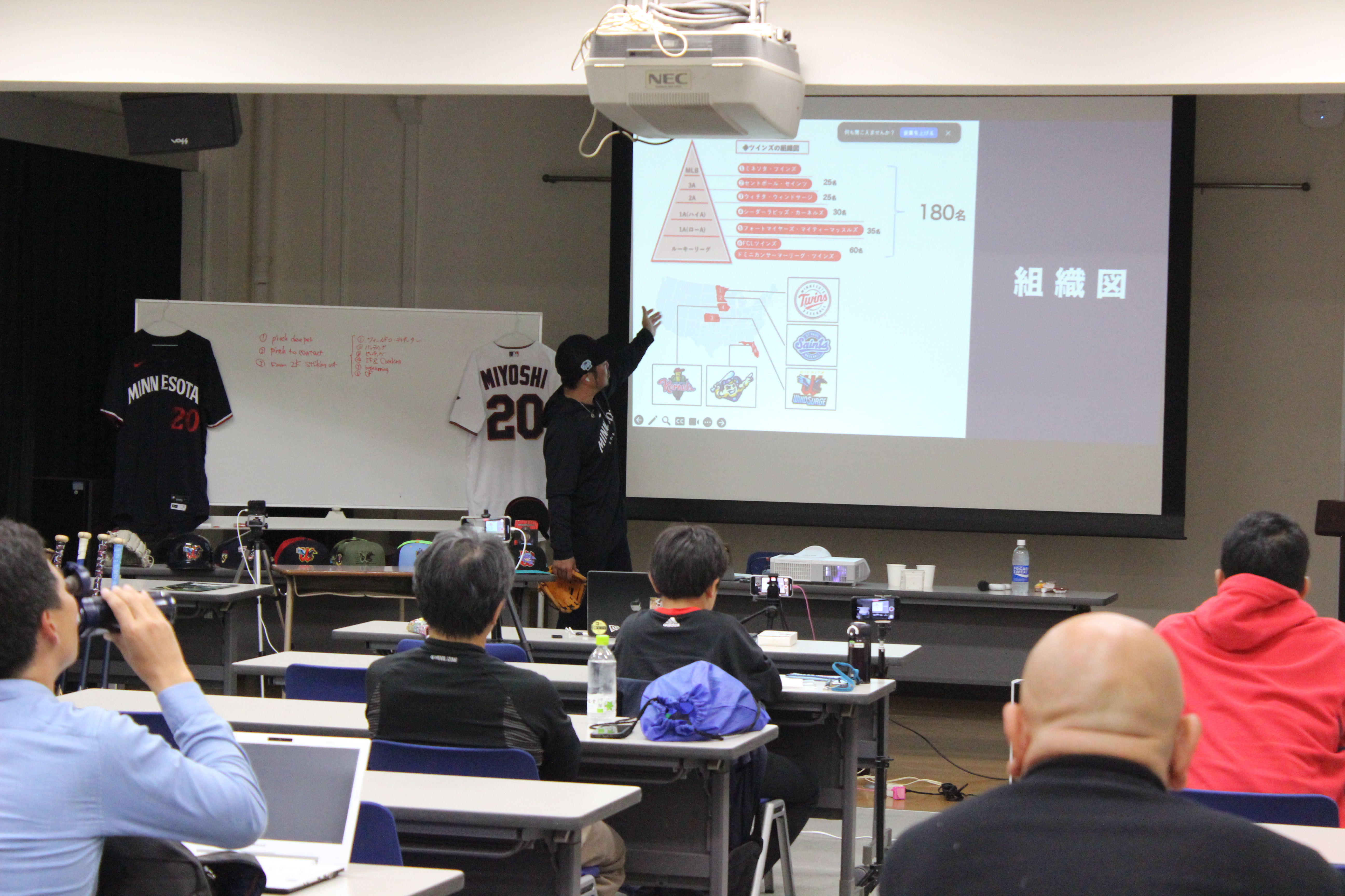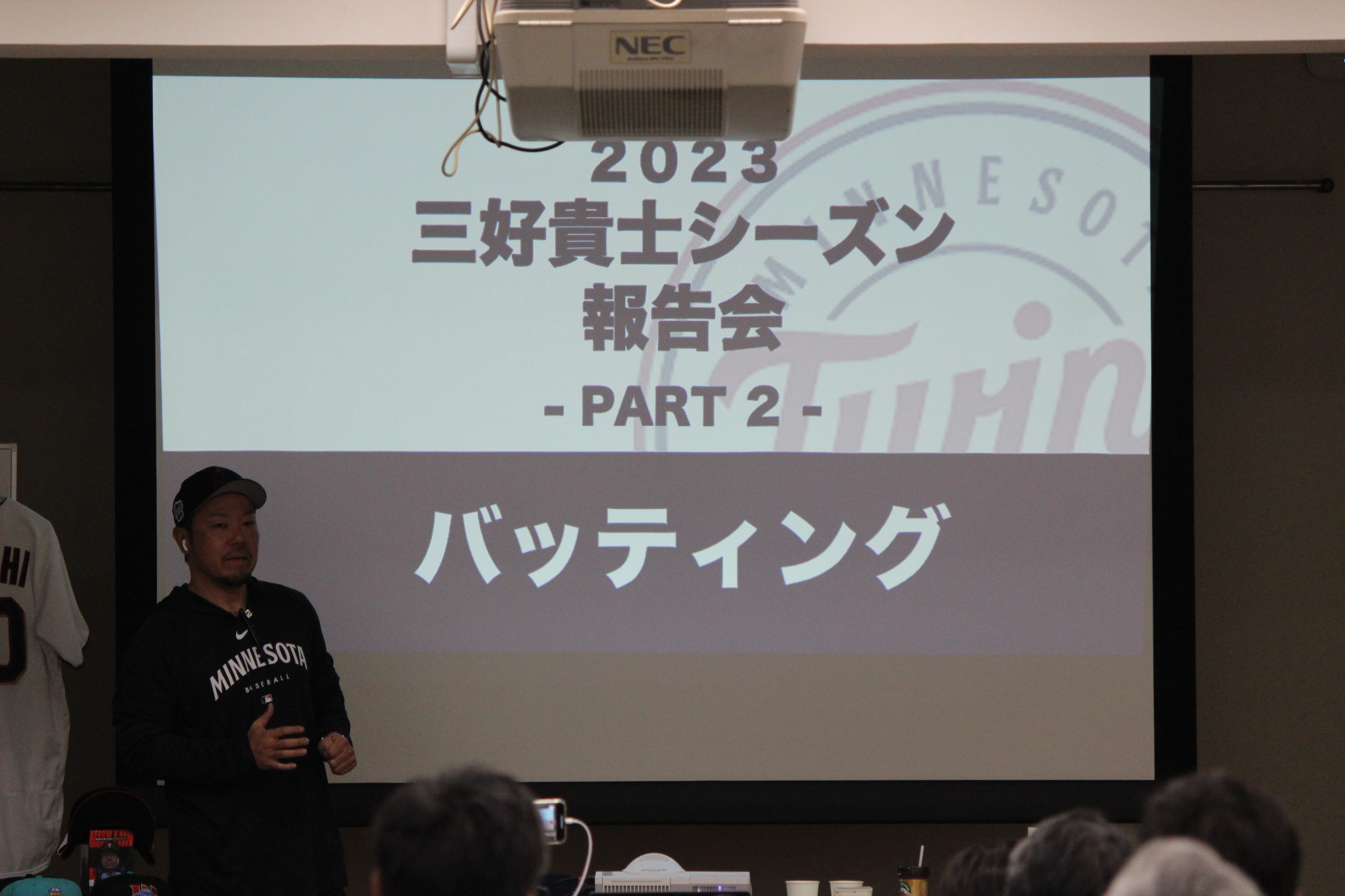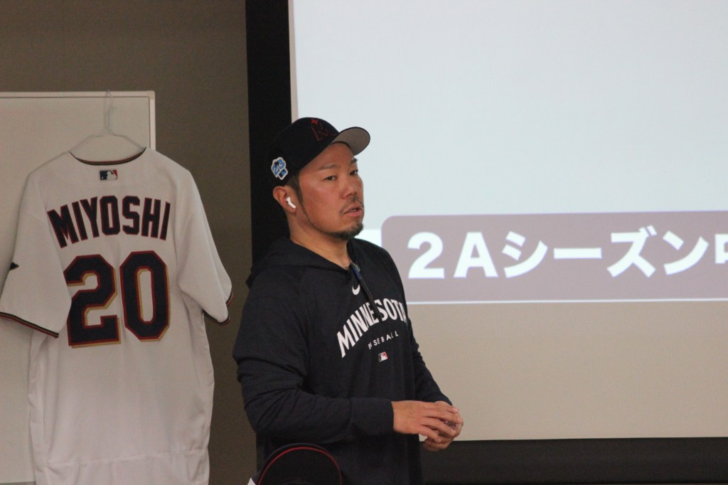 前所属のミネソタ・ツインズからシンシナティ・レッズに移籍して初めての今回の開催となりました。この報告会の中では前所属のツインズと現所属のレッズとの様々な違いにも触れて、その中でもこういう良い点を両球団から学ぶべきであろうという事も提言しました。