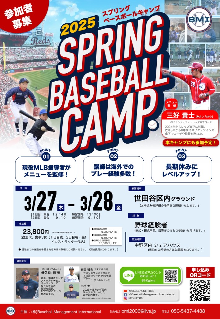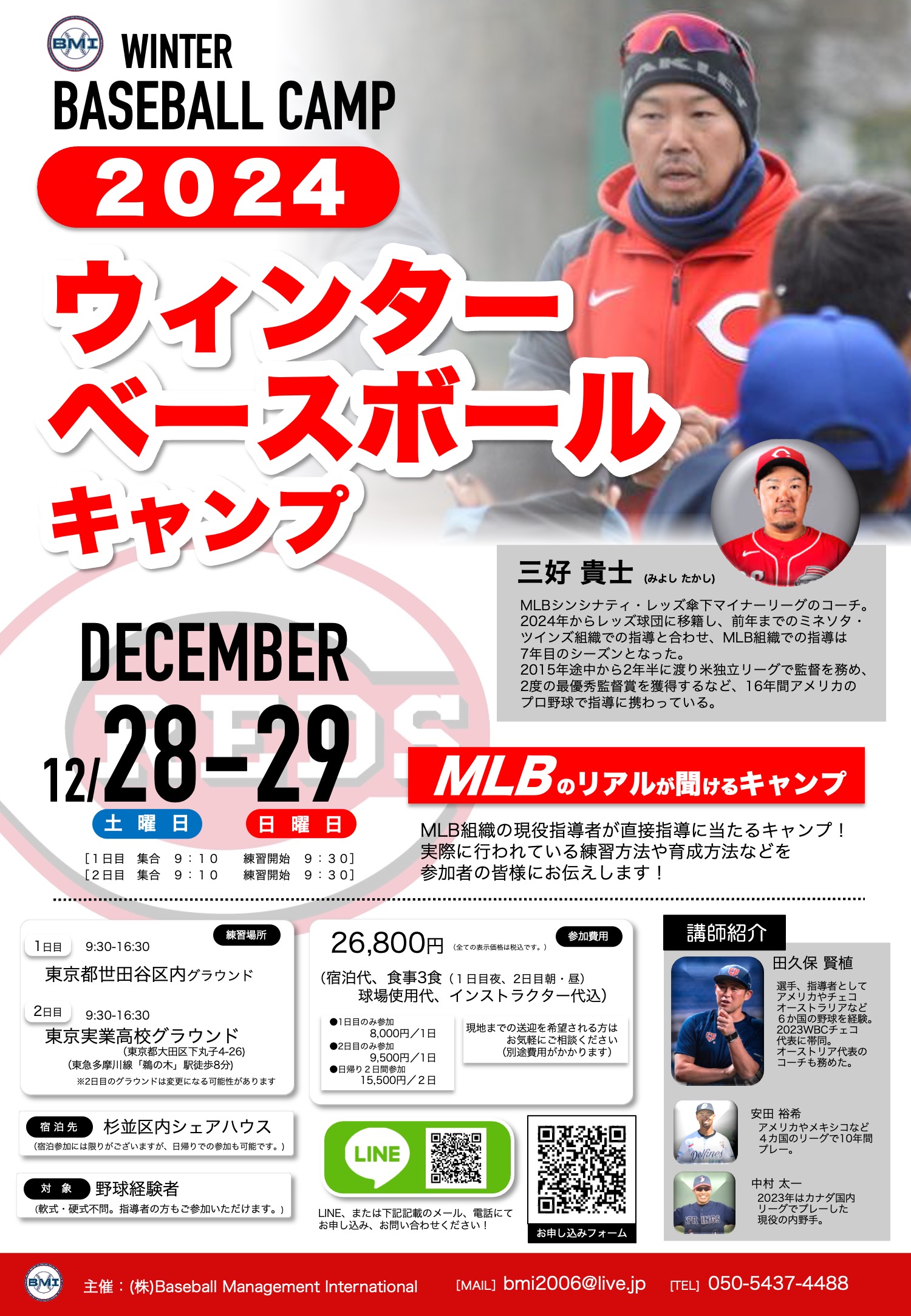 今年も12月の最後、2日間にわたって、ハイレベルな環境で実践型トレーニングを実施する「BMI WINTER BASEBALL CAMP 2025」を開催します。