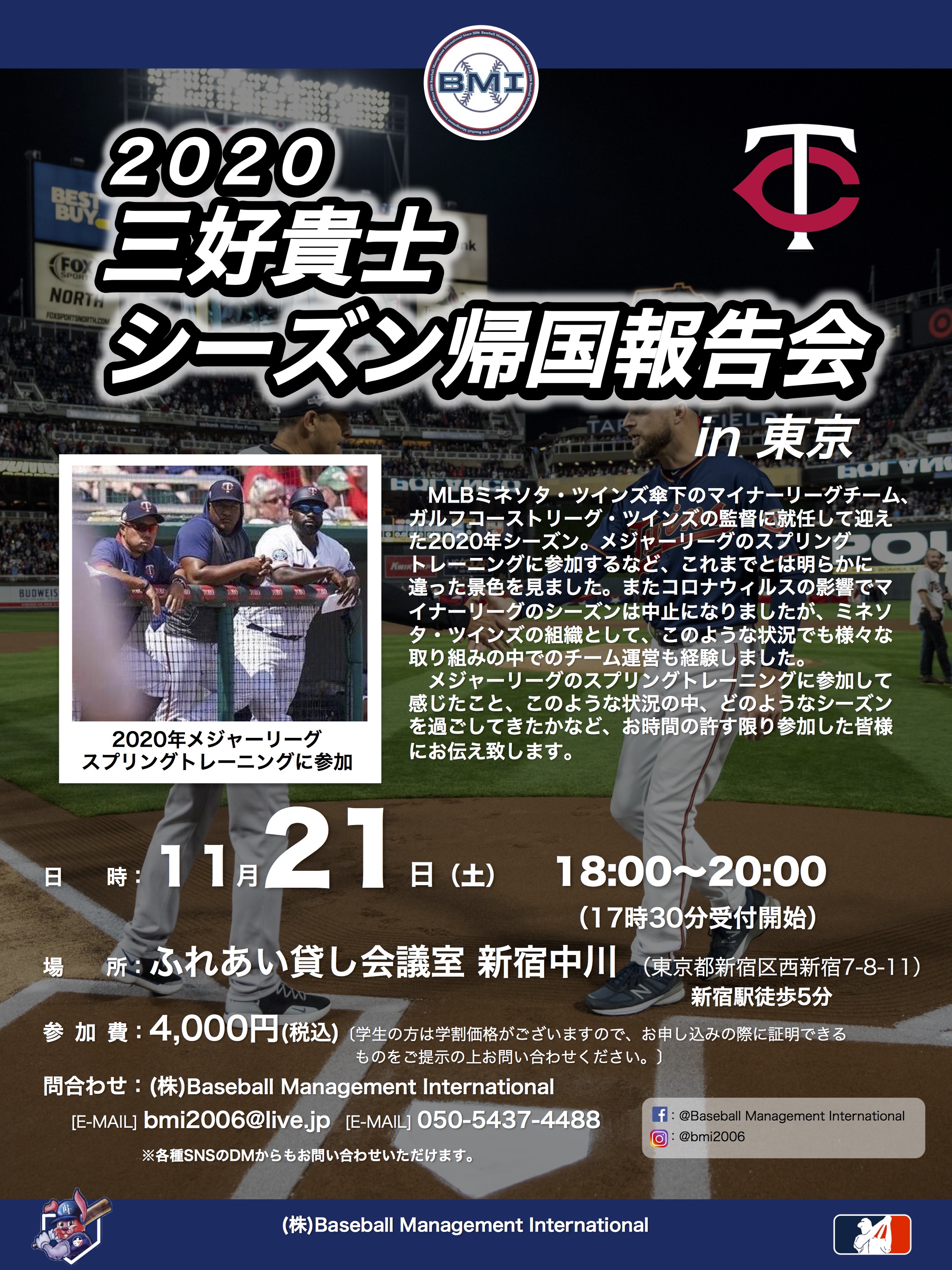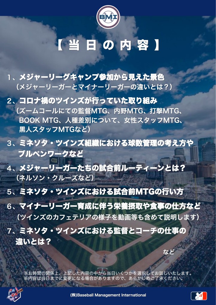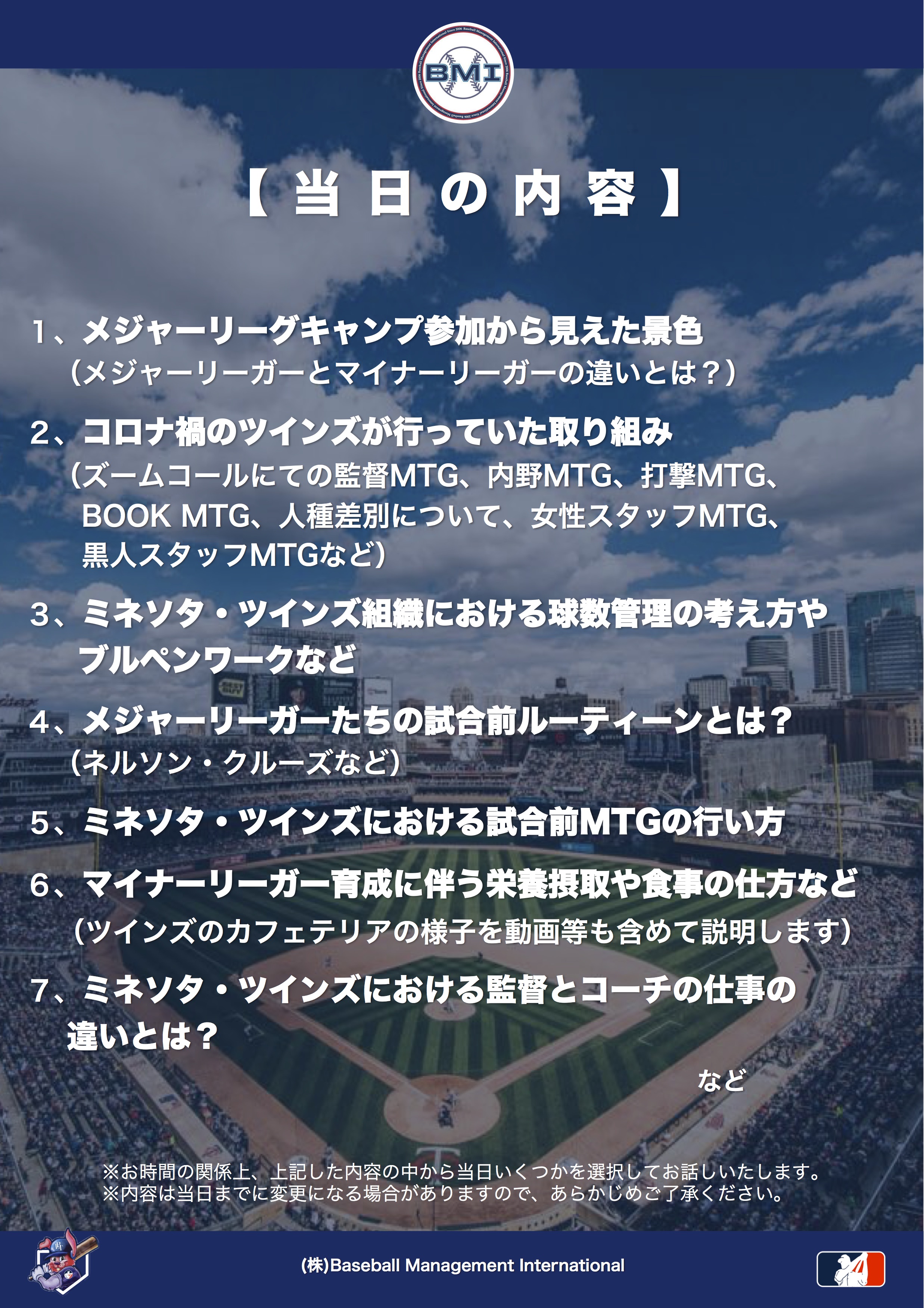 MLBミネソタツインズにコーチングスタッフとして所属して5年目の今シーズンはシングルA「Fort Myers Mighty Mussels」のベンチコーチとして過ごしたシーズンでした。
