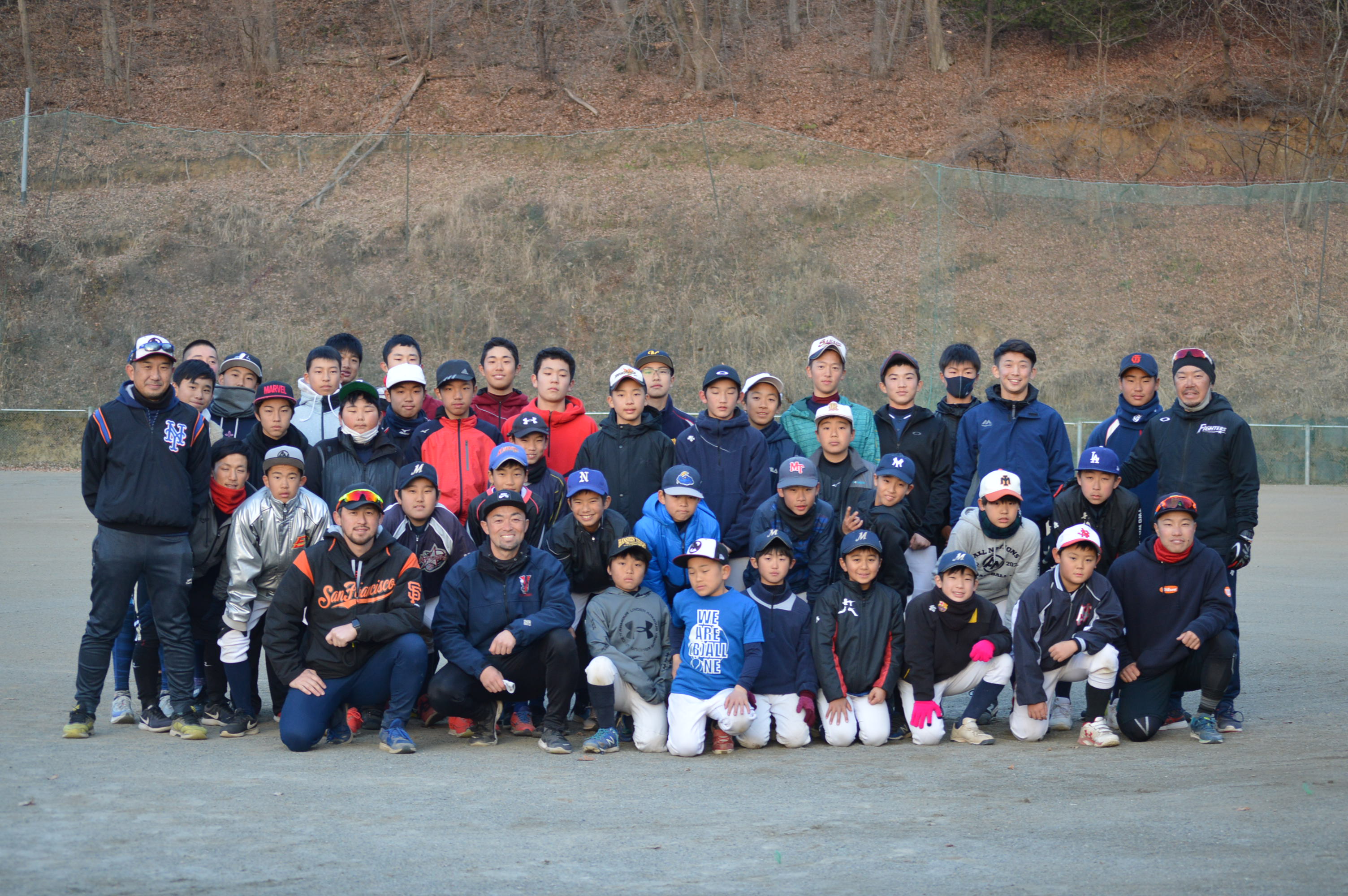 小学3年生~社会人の大人まで、軟式球、硬式球を分けながら、日帰り参加を含めて約50名の選手達が参加してくれたキャンプとなりました。