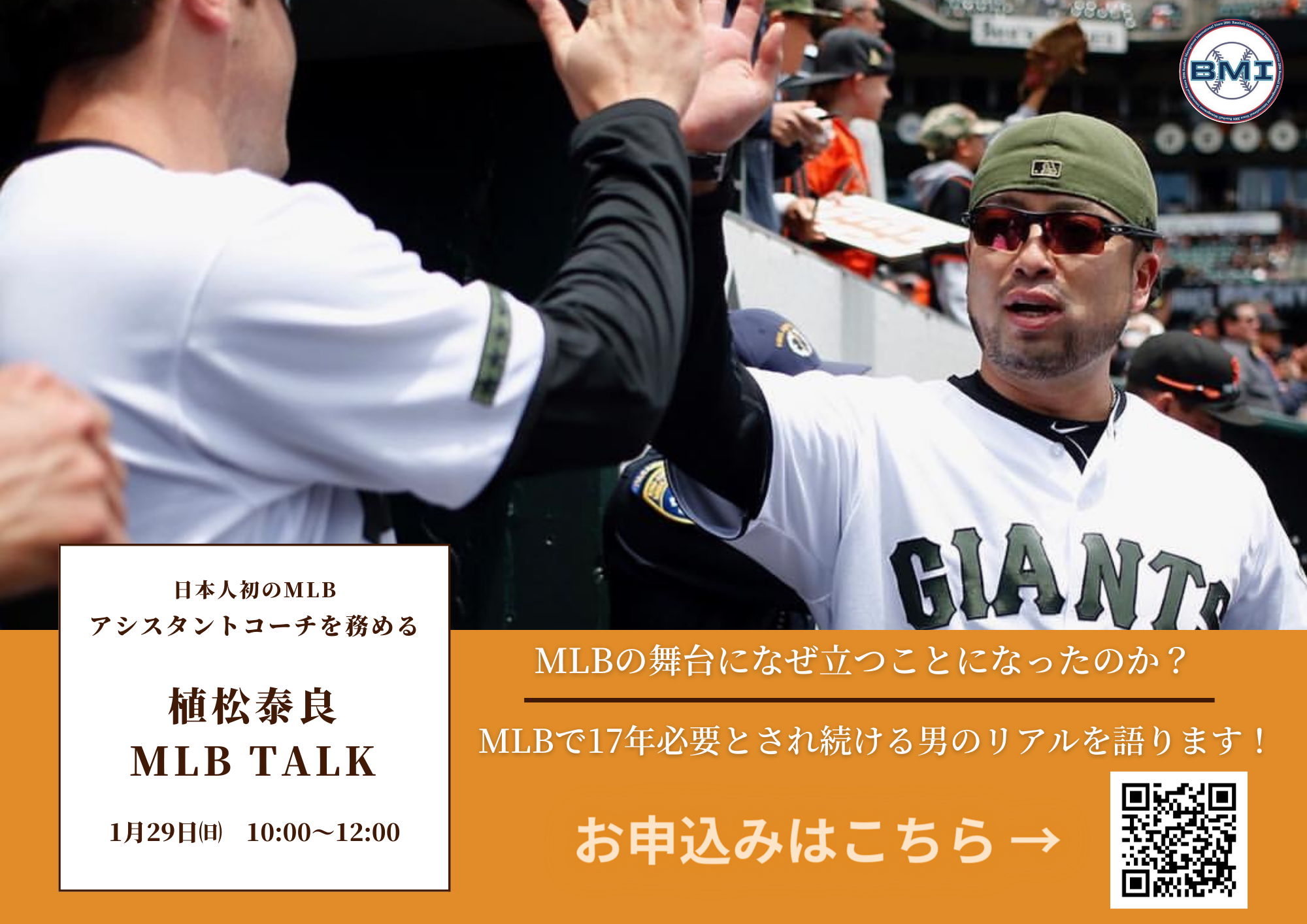 1月29日㈰ 10時より、東京都世田谷区にて、MLBサンフランシスコ・ジャイアンツのアシスタントコーチを務めている植松泰良MLB TALKを開催致します。